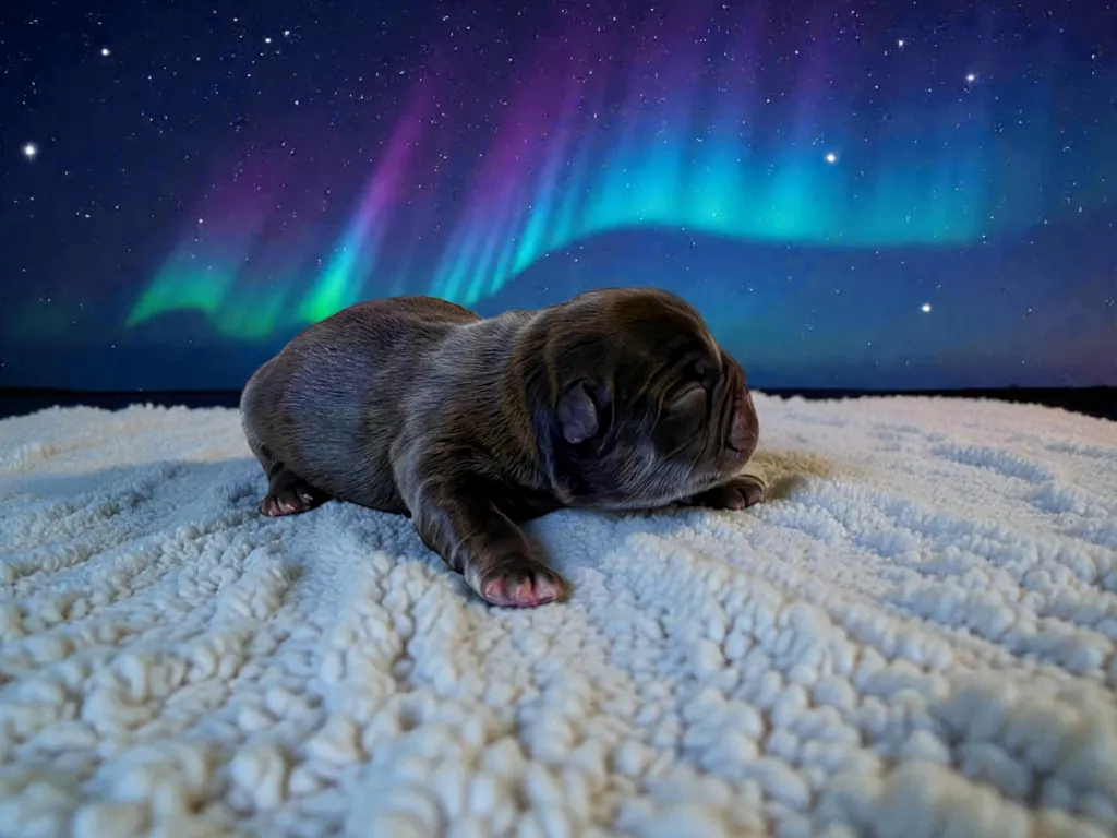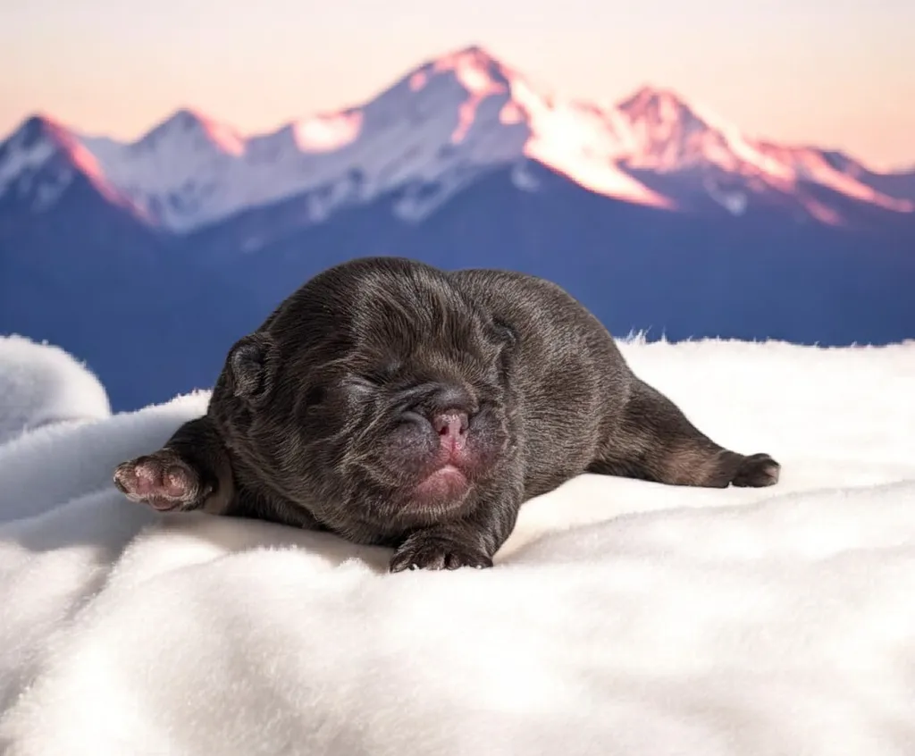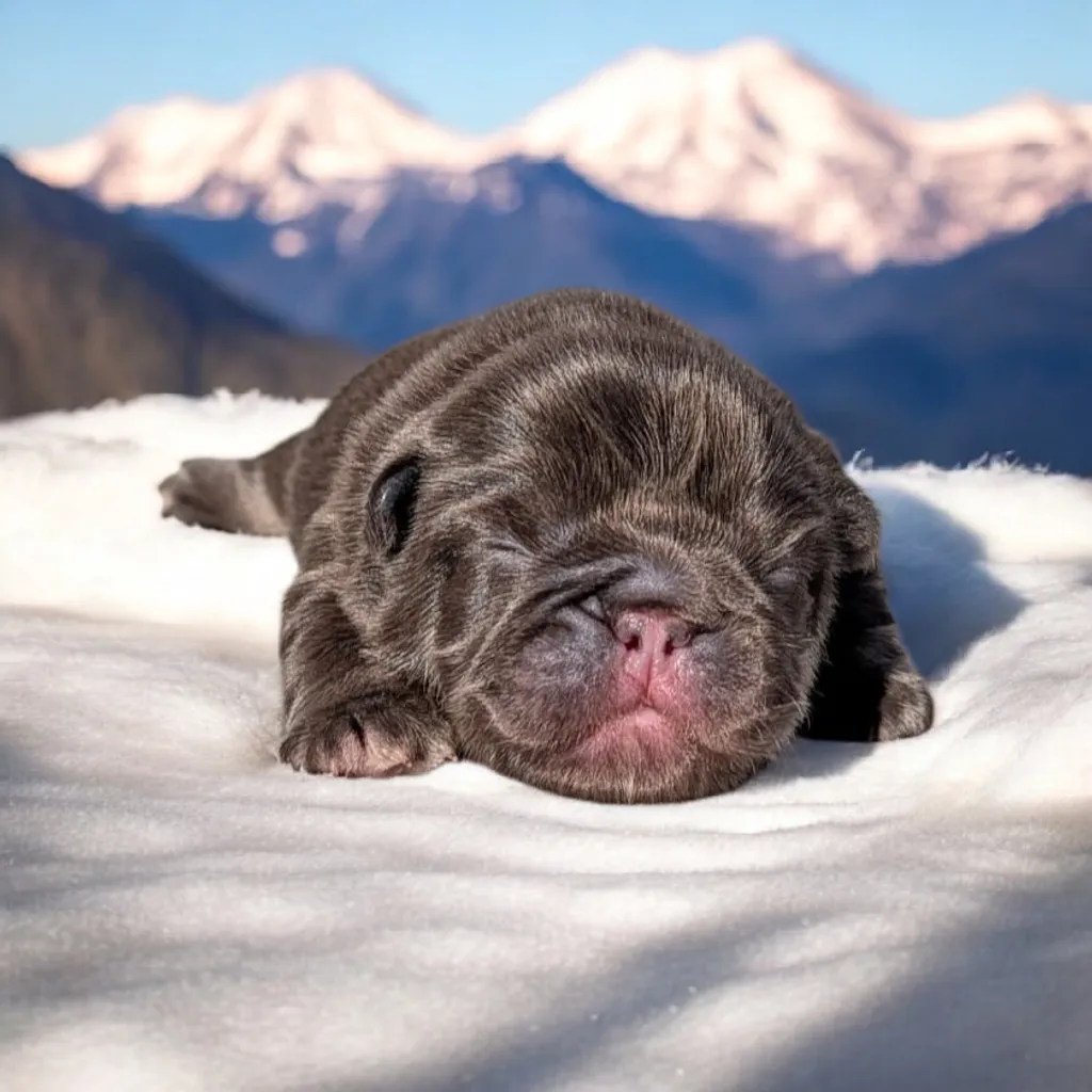 Hatchi est un bouledogue français exotique, sont pelage est "fluffy" c'est à dire que son poils est plus épais, plus dense et surtout d'un aspect moelleux contrairement aux poils courts habituels. Il sera visuellement ressemblant à son père, sa morphologie parle déjà...